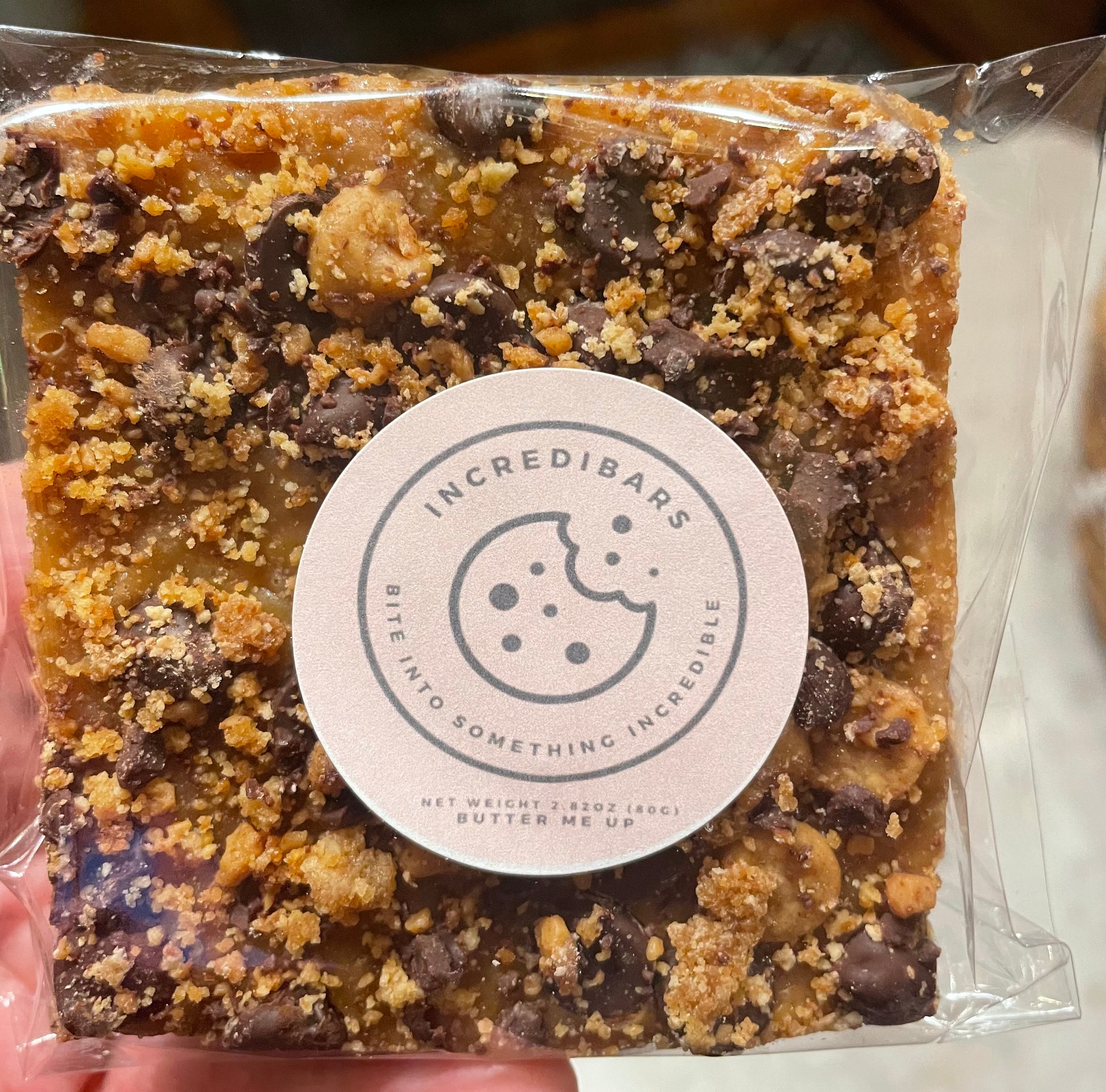 Indulge in a heavenly flavor explosion with Butter Me Up! This revolutionary peanut butter chocolate chip cookie bar is unlike anything you've ever tasted.